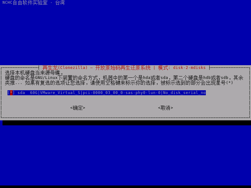 - 根据页面提示,选择需要同传的源磁盘,然后回车